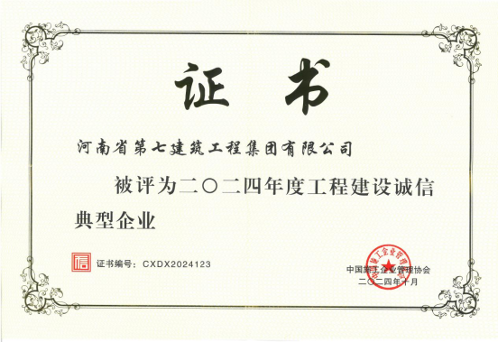 集团公司荣获诚信企业和个人等多项荣誉发布日期:2024-09-11 | 来源:admin | 阅读:5559